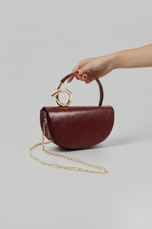 KADIN GOLD DETAYLI BORDO EL ÇANTASI