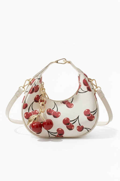 Ayshee kadın çanta; modern yarım ay formu ve gold kiraz aksesuar detayı ile sade kombinlere hareket katar. Günlük kullanım için hafif ve kullanışlı yapıya sahip olup, şık tasarımı sayesinde özel kombinlere de uyum sağlar.