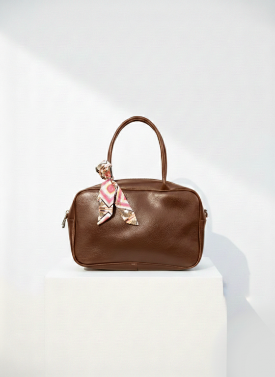 Yumuşak dokulu deri görünümlü yüzeyi ve minimal tasarımı sayesinde hem spor hem şık kombinlerle kullanılabilir. Sap kısmındaki desenli fular detayı çantaya zarif ve trend bir hava katar.